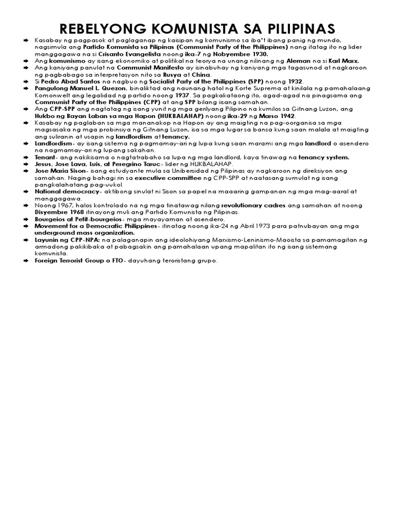 Banghay Aralin Sa Araling Panlipunan 8 Kasaysayan Ng Daigdig. REBELYONG KOMUNISTA SA PILIPINAS. On August 26 of the next year a new political party was organized from members of the KAP the Partido Komunista ng Pilipinas.