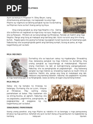 Mar 06 2016 Itong modyul ng pangkatuto ay makakatulong sa mga-aaral patungkol sa mga Unang taong naninirahan sa Pilipinas. Mapuputi sila at balingkinitan ang pangangatawan matangkad kaysa sa mga negrito makitid ang mukha malapad ang noo malalim ang mga mata at matangos ang ilong. Mar 01 2014 Sinasabing ang mga unang taong naninirahan sa Pilipinas ay nakatira sa itaas ng puno ____3.