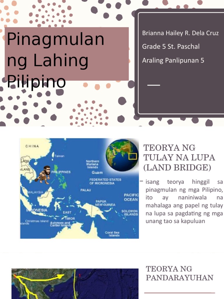 Ayon sa teorya na ito ang Pilipinas ay dating nakakabit sa kabuuang kontinente ng Asya. 10072017 Teoryang Siyentipiko ito ang paniniwalang anyong- bakulaw na pinagmulan ng mga tao na naninirahan sa mga yungib libu-libong taon na ang nakararaan at gumagamit ng mga makalumang kagamitan. Ito ay natuklasan ni Dr.